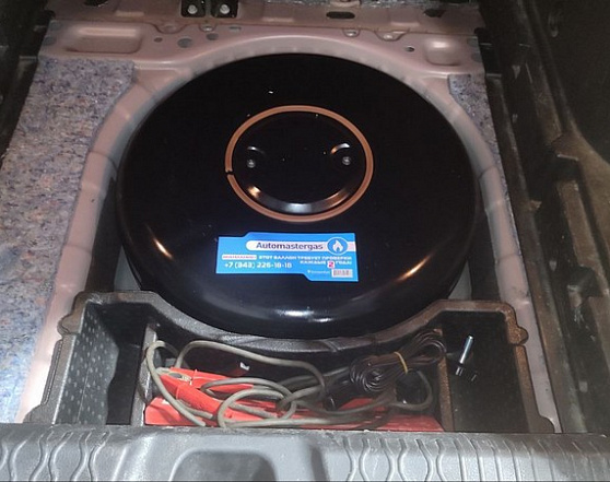Установка газобаллонного оборудования на Lada Vesta 2023 г., объем двигателя 1.6л., 113 л.с. 4 цилиндра (Распределенный впрыск). Установлено ГБО 4-го поколения на пропане LANDI RENZO (Италия). Тороидальный баллон на 53л., установлен вместо для запасного колеса. Заправочное устройство под лючком бензогорловины. Мультиклапан класса Евро.